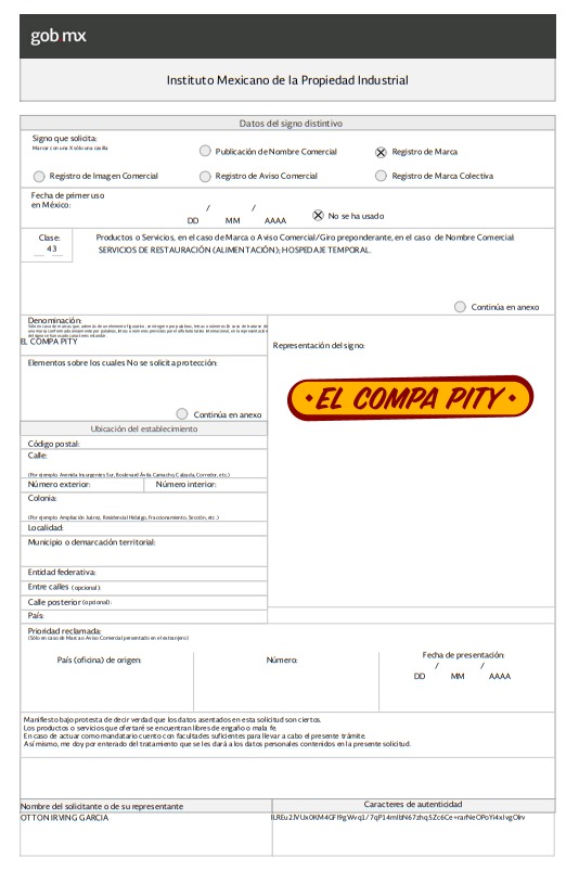 La empresa es titular de las marcas “Pata de mula” (2016), “Pity el mil amores. Restaurant cantina” (2013) y “Benga la nigth” (2013), correspondientes a establecimientos de comida y bares.